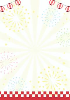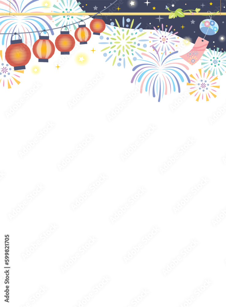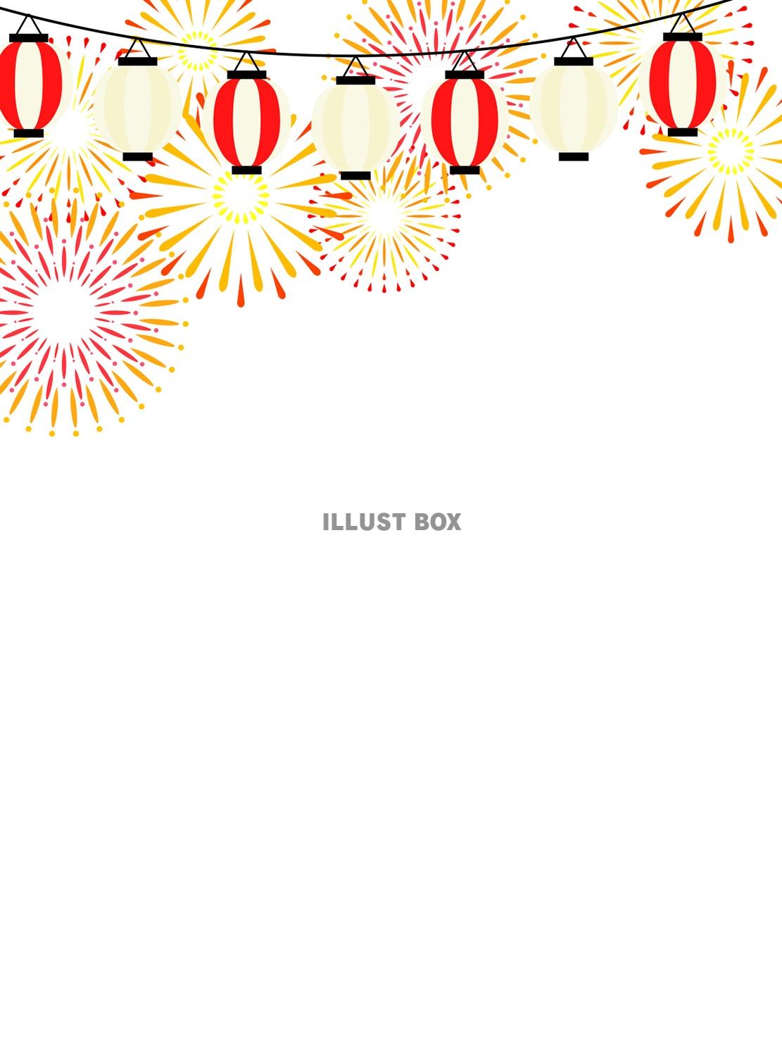 花火大会 夏祭りの背景フレーム ちょうちん付き 縦:イラスト無料。