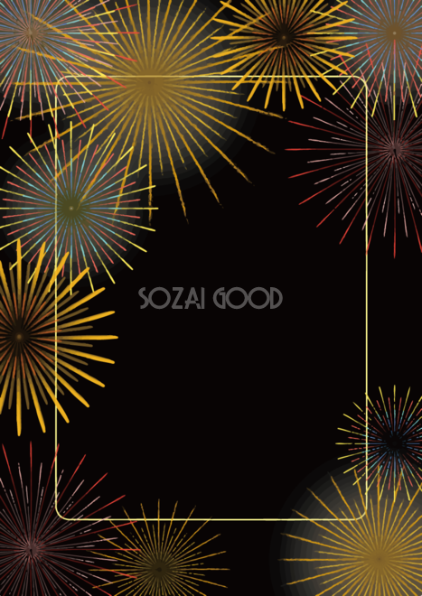 花火大会おしゃれ 縦 フレーム枠イラスト無料フリー83968素材Good。