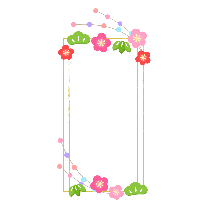 松竹梅と金色の縦型四角のフレーム・枠イラストフリー素材 イラストミント。