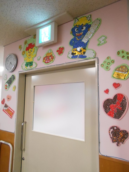 バレンタイン壁面飾りイベント恵み野デイサービス。