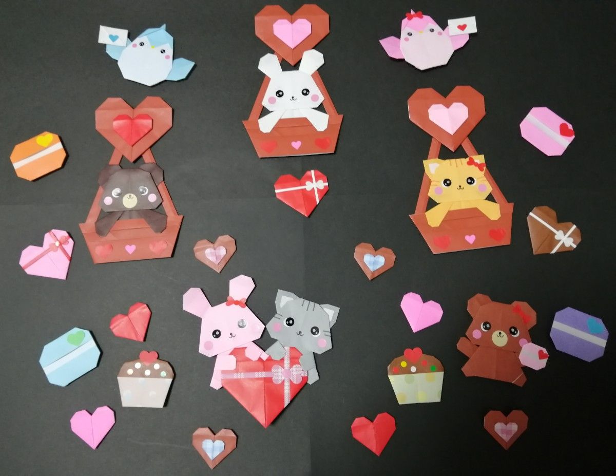 工作ネタ ハートとキューピッドの矢Heart with CupidArrow バレンタイン2月Valentine壁面飾り高齢者レク・OT・デイ・保育知育じゃばら折り・折紙DIY。