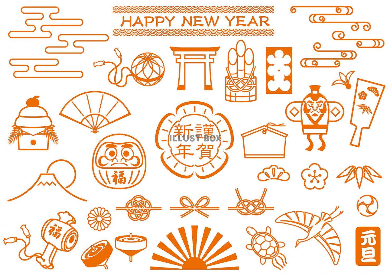 お正月のシンプルなイラスト素材集:イラスト無料。