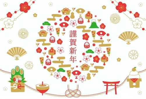 かわいい正月アイテムで円型に囲む フレーム枠イラスト無料フリー84439素材Good。