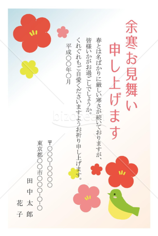 余寒見舞い はがき例文と書き方1枚~即日印刷プリントメイト。