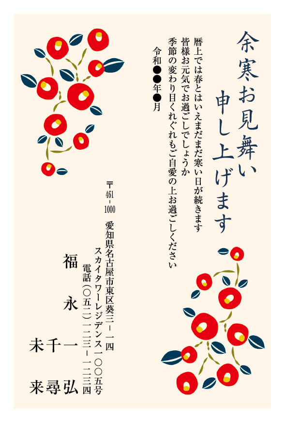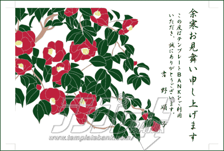 椿」デザインの寒中見舞い 喪中テンプレートパーク。