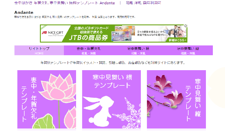 喪中はがき 年賀欠礼 寒中見舞い 無料テンプレート Andante和風 洋風 商用利用可。