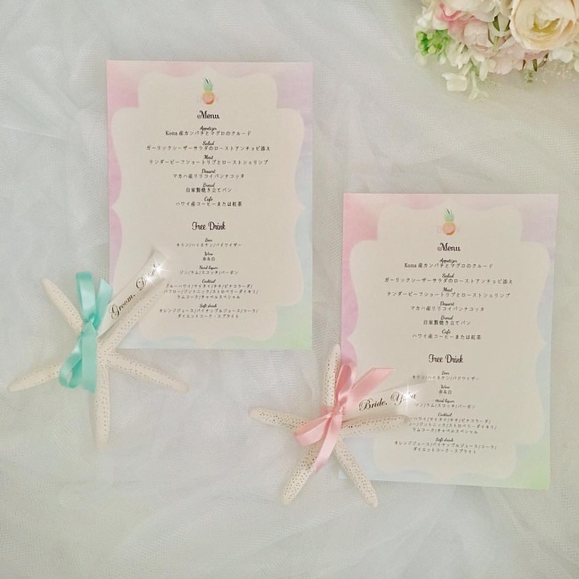 メニュー表 70円 結婚式 高級紙マーメイド*角丸加工 席次表・席札・メニュー表 S.shine 通販 12841410Creema クリーマ。