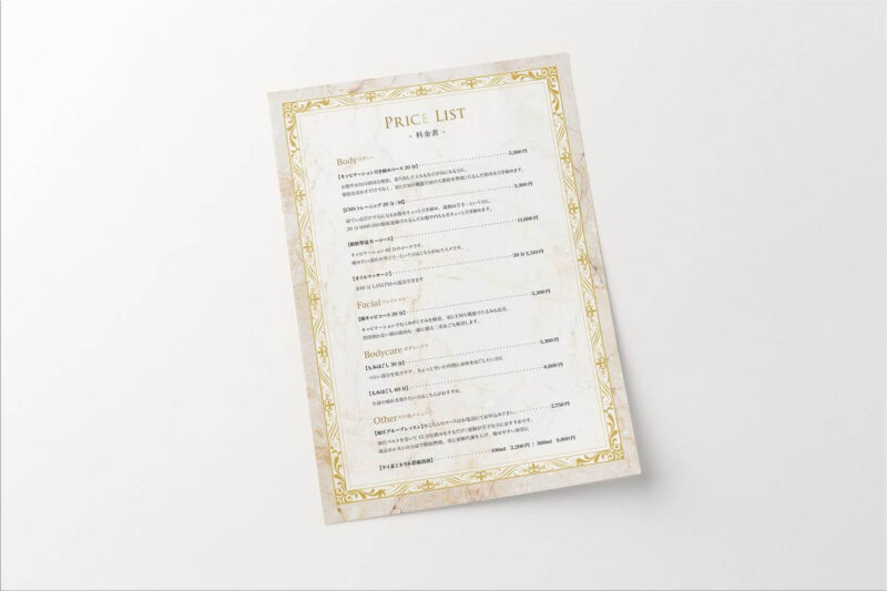 メニュー表 デザイン一覧WEBで簡単手作り印刷 ココサブアテンドのメニュー表:1ページ。