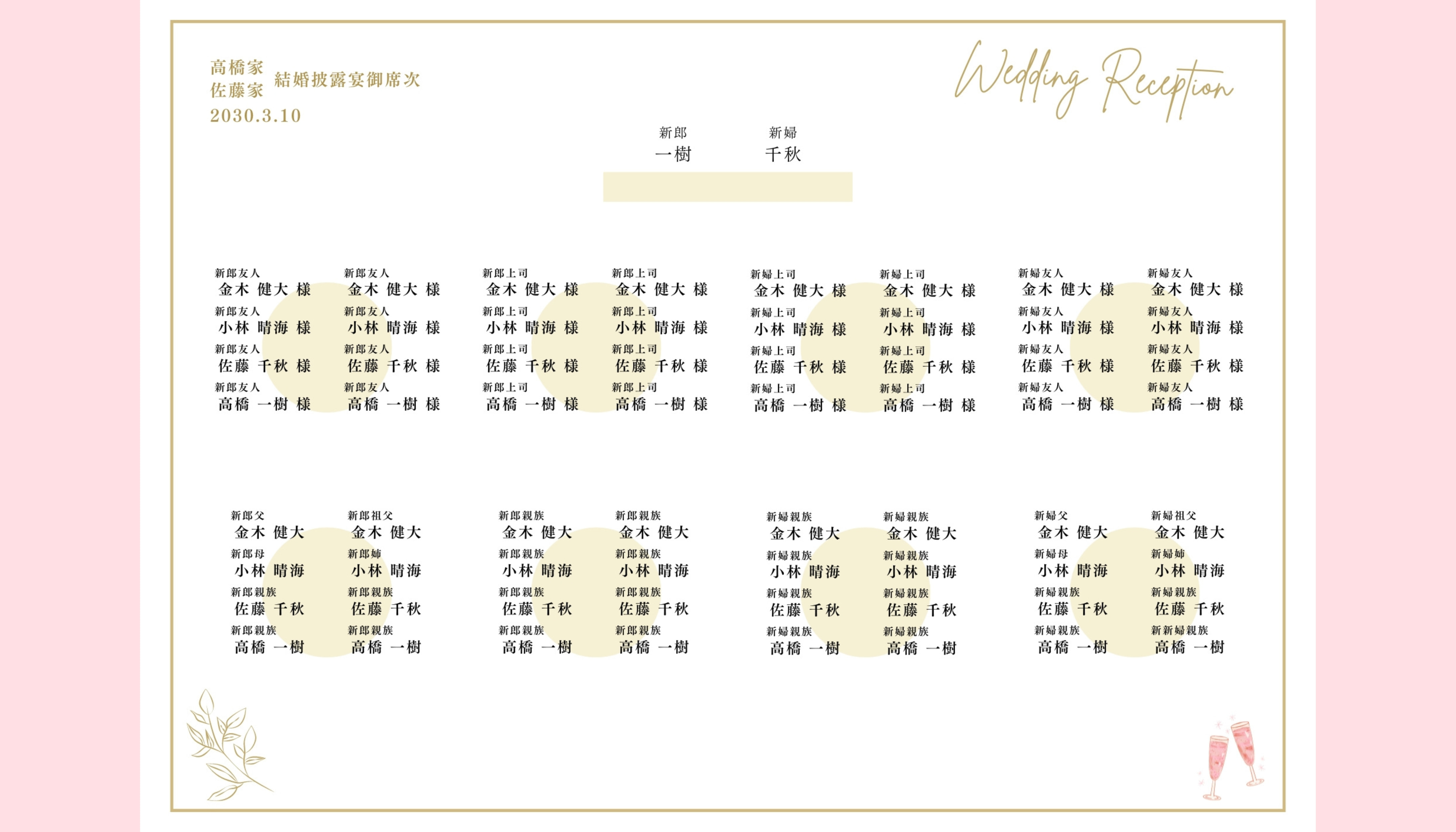 結婚式席次表を手作り!無料デザインテンプレート・AI機能で簡単に座席表を作成・印刷Canva キャンバ。