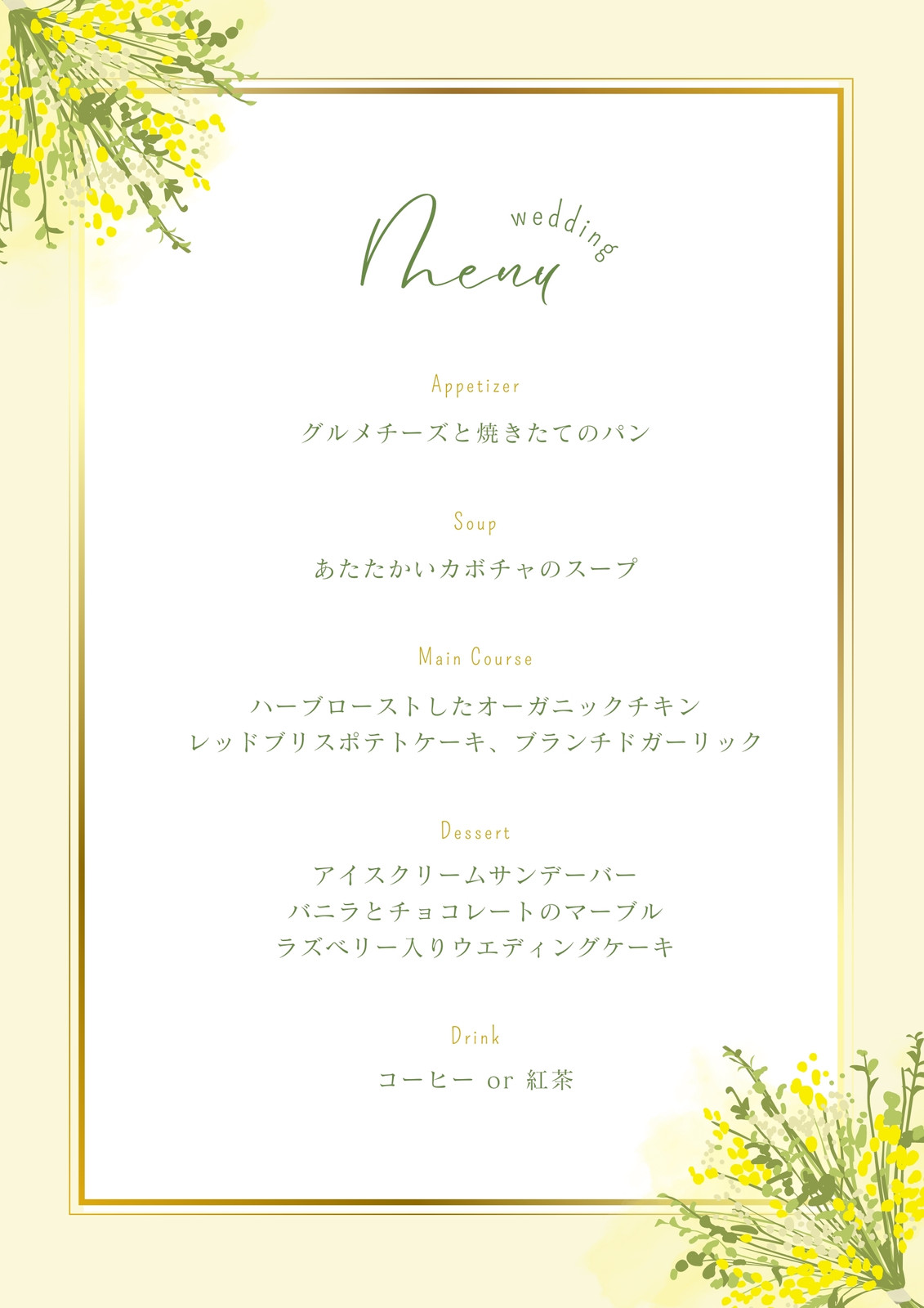 黄金千里 結婚式 メニュー表結婚式 メニュー表ならPIARY ピアリー。