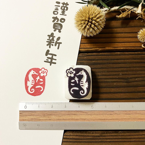 お正月2024 辰年 ポチ袋や年賀状に*文字が選べる*シンプル可愛い❤︎タツノオトシゴの落款風はんこ* 受注製作はんこ・スタンプnijiirostamp 通販 16627721Creema クリーマ。