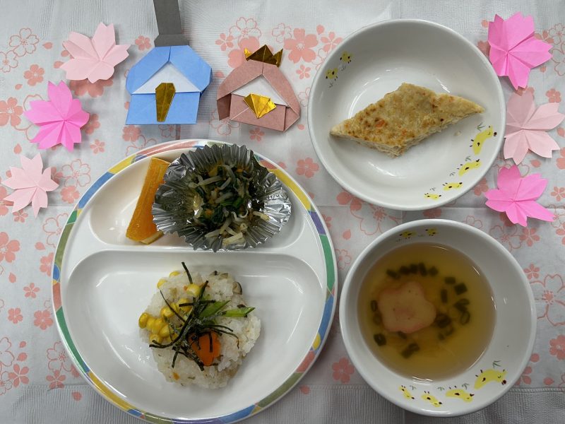 ひな祭りのお祝いメニュー🎎あおぞら保育園東京都羽村市。