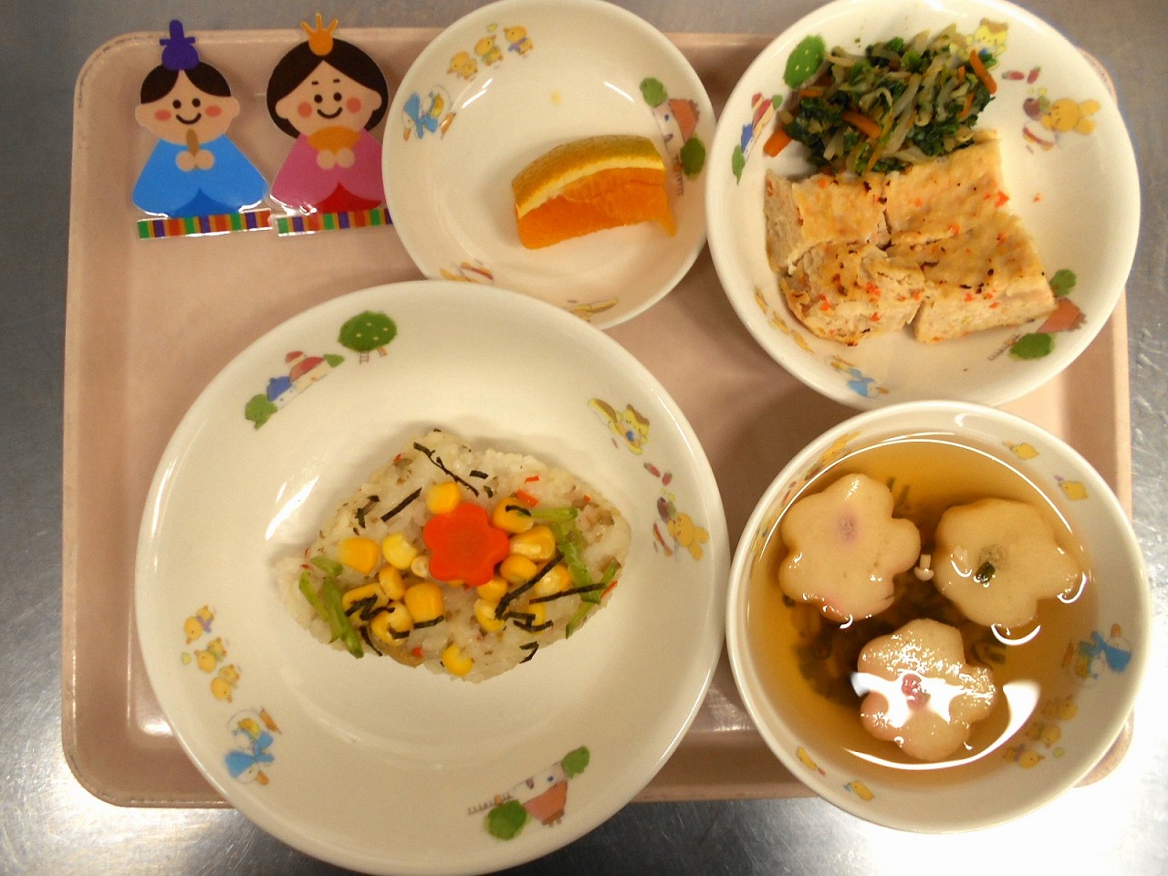 3 3の給食 ひな祭り献立でした! : タンポポ保育園の給食。