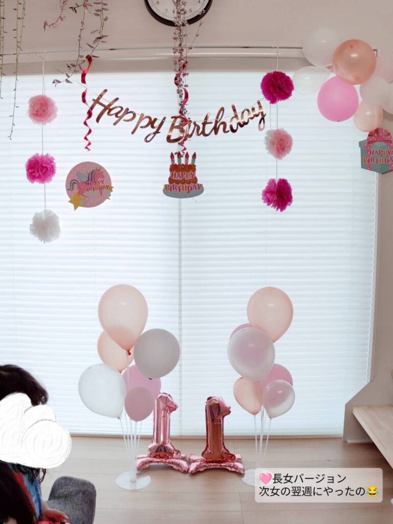 セリア お誕生日会の飾り付けレポ🎂女子が好きなふんわりピンク色のホームパーティー♪パッシブデザインのおうちログ。