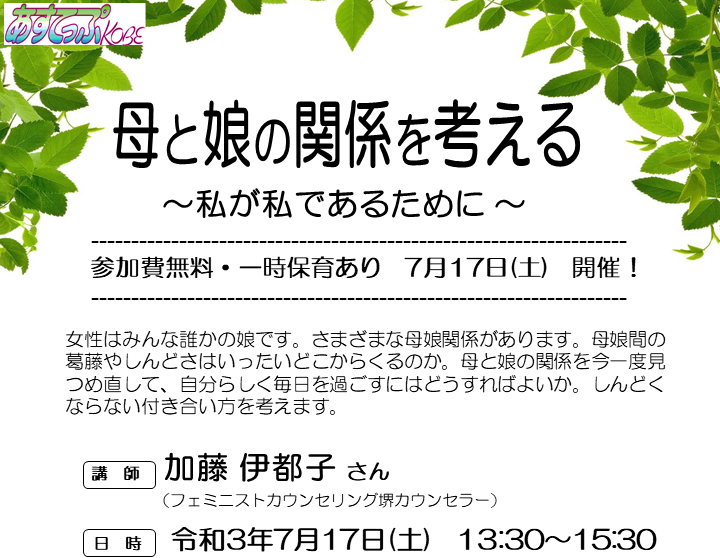 7月17日 母と娘の関係を考える~私が私であるために ~神戸市男女共同参画センタ。