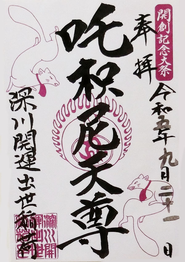 深川不動堂様「お稲荷様開創三十周年記念大祭御朱印」 – 株式会社研文社。