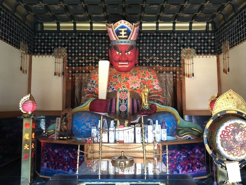 法乗院📍東京都江東区深川2-16-3 ⭐️閻魔大王御朱印 こちらは閻魔堂の御朱印です。 閻魔堂は御本堂の向かって左にあります。ここには大きな閻魔様がいらっしゃいます。 そして、お賽銭を「健康」「恋愛」などと書かれた箱に投げ入れると、閻魔様が光ったり、お告げが。