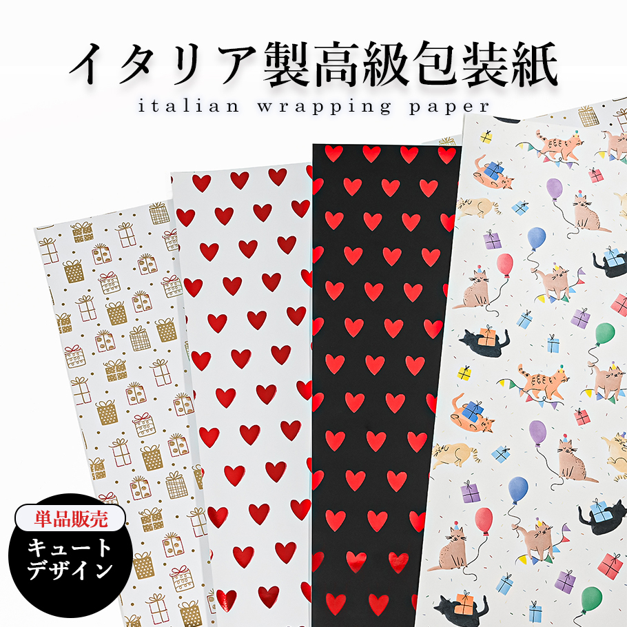 包装紙のみ 1枚 特別なイタリア製の包装用紙 ハート柄 ハートホワイト ハートブラック ギフトホワイト ネコ柄 キュートイタリア製 高級包装紙還暦祝い 誕生日 結婚祝い 結婚式 退職祝い 入学祝い 父の日 母の日 即日発送 ホワイトデー -名入れギフトのエイレベル。