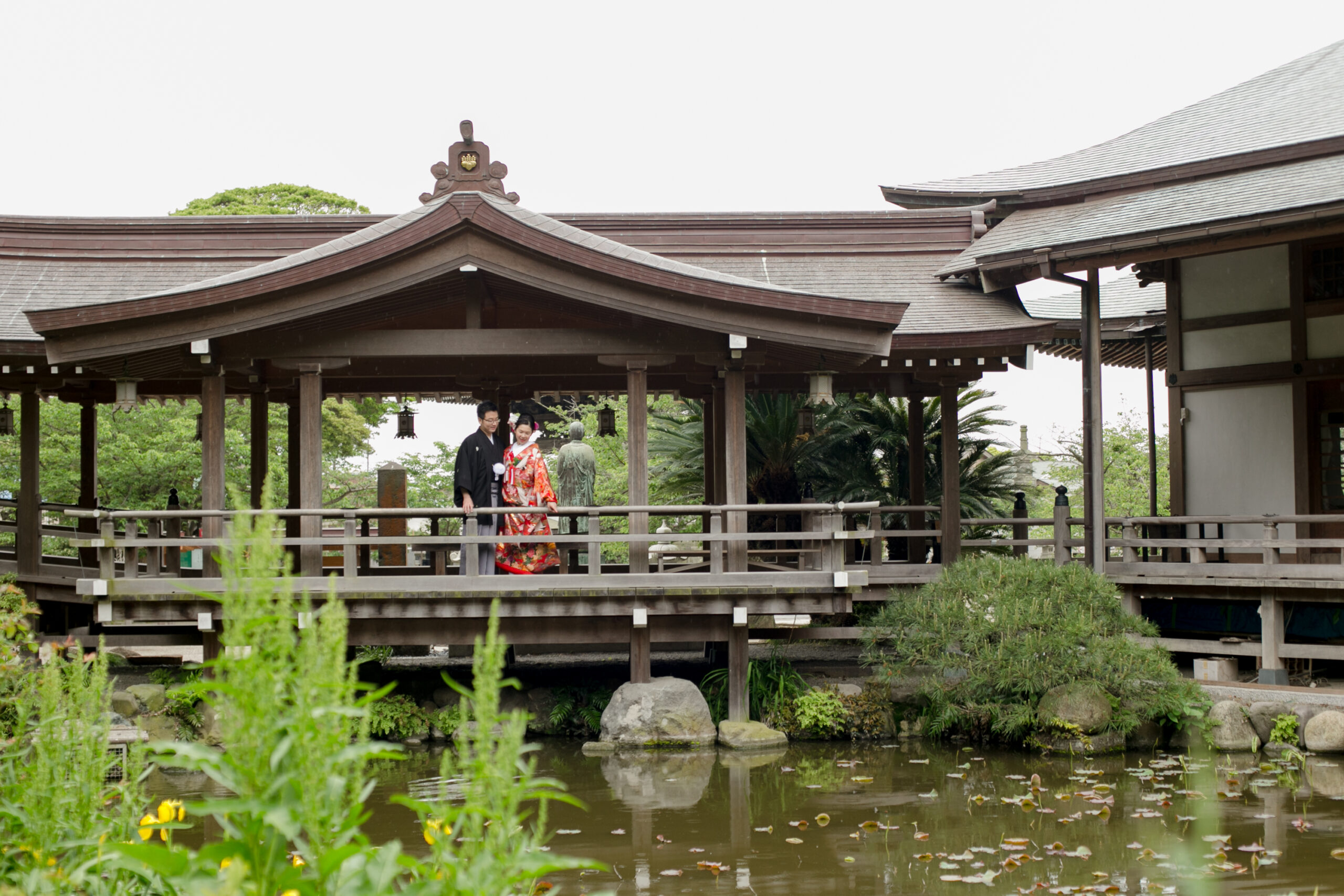 蓮池のある庭園で神聖な写真を! 鎌倉光明寺でのロケーションフォトウェディング・結婚式の前撮り HowToコラム。