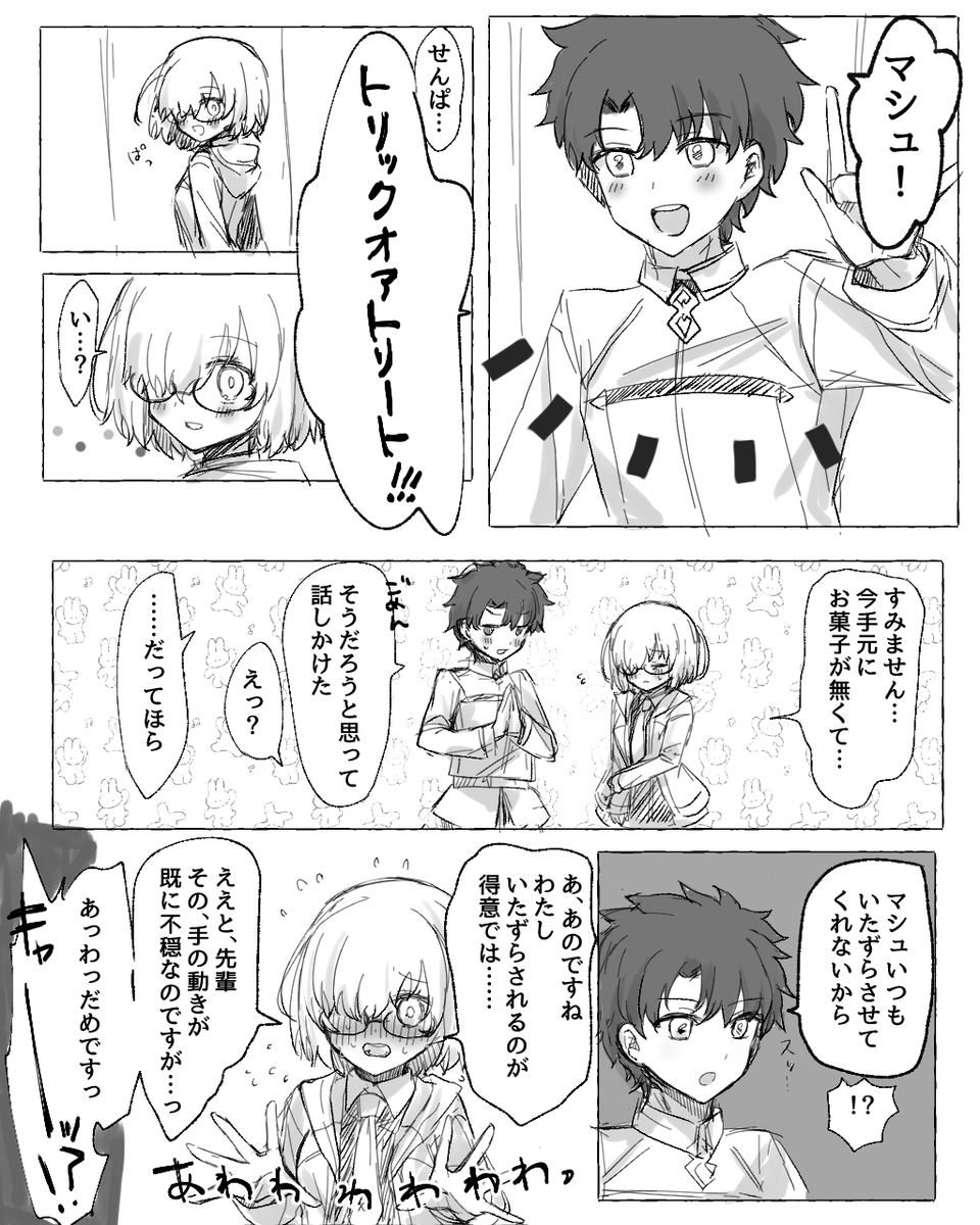復刻ハロウィンでマシュに対してぐだが「いたずらだ!」とノリノリだったのではるかっぱ さんのマンガツイコミ 仮。
