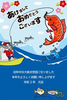 鯛の年賀状・お正月イラスト年賀状の無料テンプレートやイラスト。