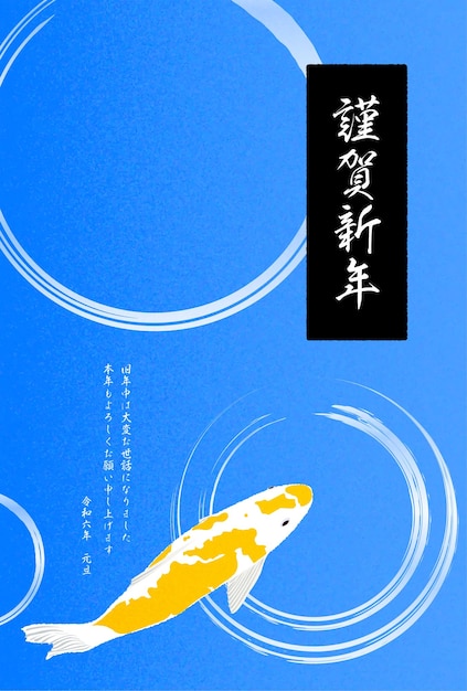 2024年 錦鯉と波紋の年賀状Premiumベクトル素材。