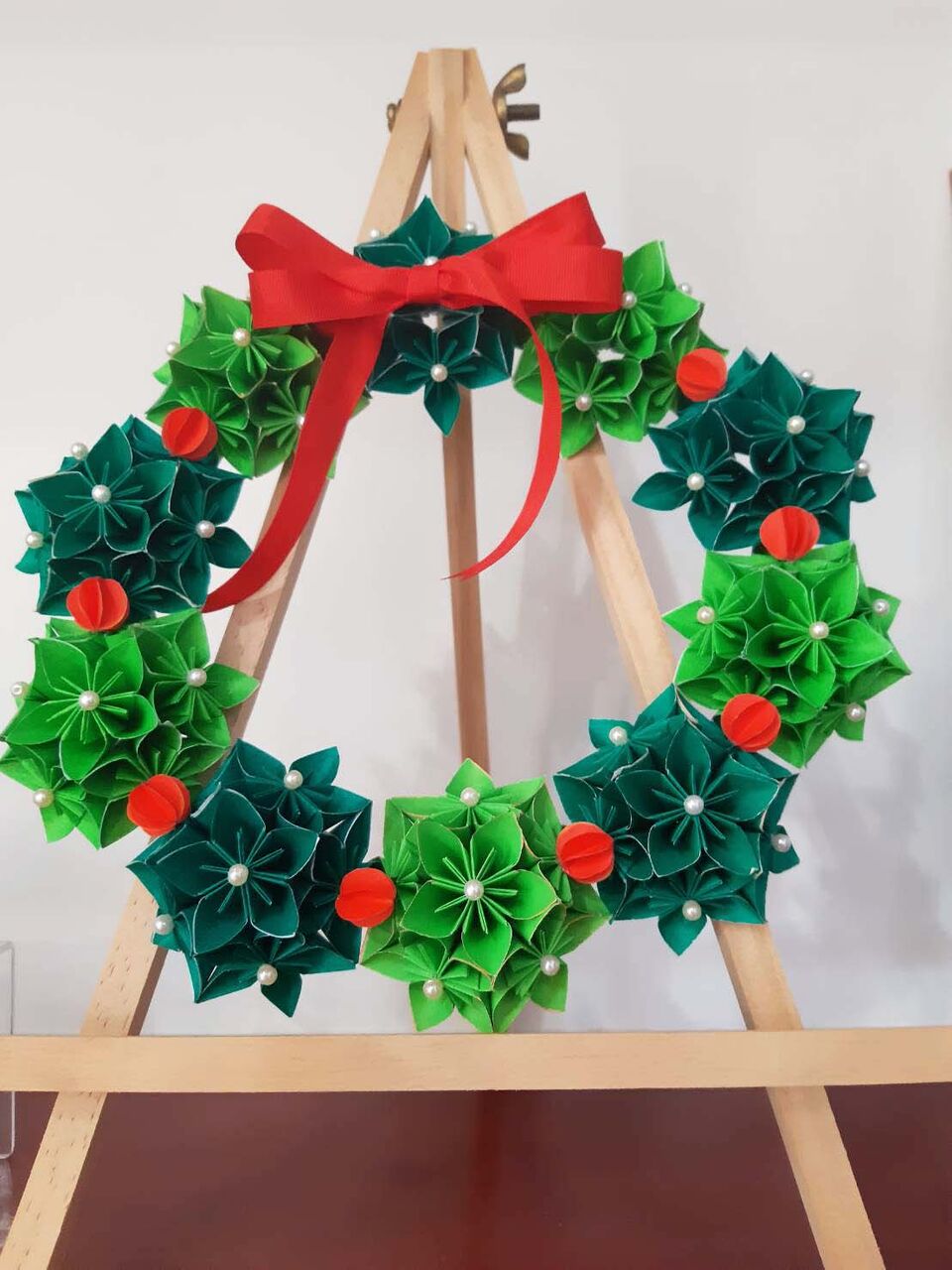 クリスマスリースは折り紙で!作り方は簡単♪おしゃれなリース☆kodomoto。