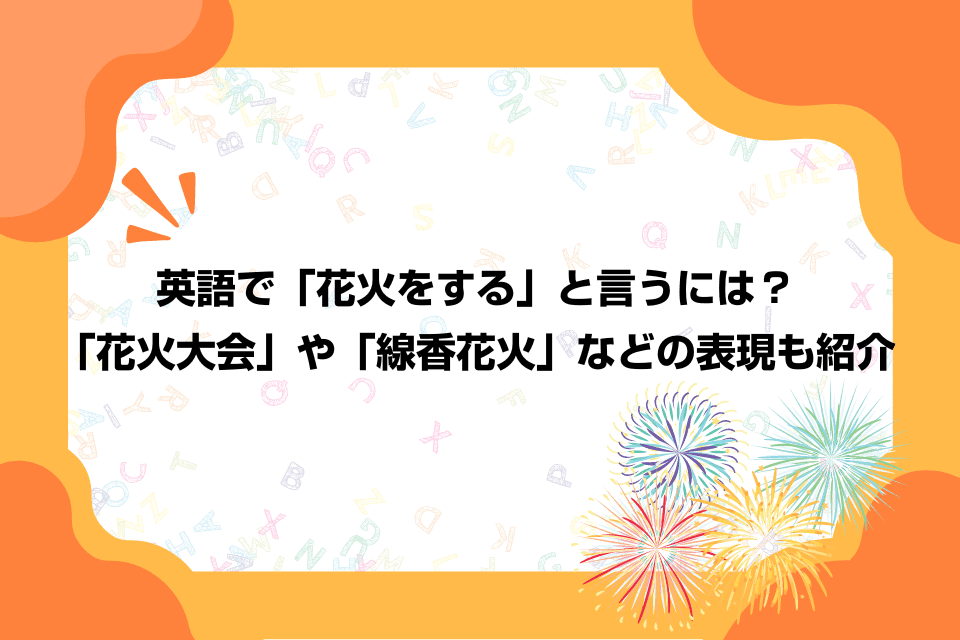 花火大会」って英語でなんて言う?関連表現や例文も紹介 - ネイティブキャンプ英会話ブログ英会話の豆知識や情報満載。