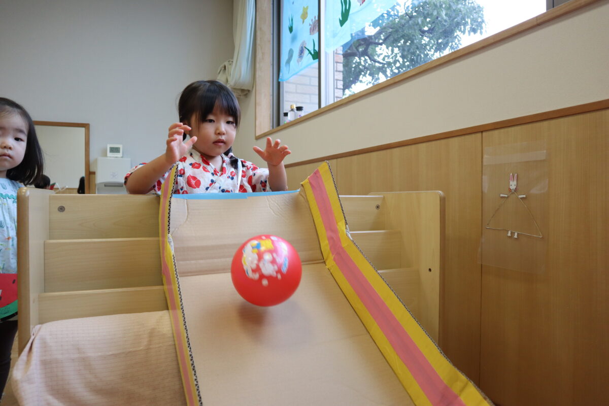 2歳児 夏祭りごっこ 7月の様子兵庫県芦屋市の山手夢保育園。