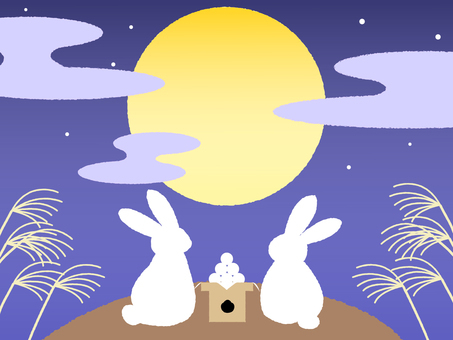 9月十五夜☆月見うさぎ 壁面飾り製作素材パーツ 背景風景 介護施設高齢者幼稚園。