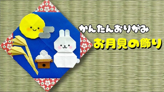お月見の折り紙折り紙1枚で 簡単 ! かわいい 満月 うさぎ 折り方秋の折り紙 飾り 9月 Origami full moonRabbit。