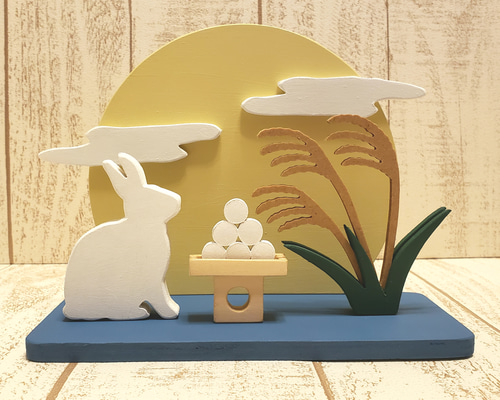 受注制作 十五夜とウサギの木製置物お月見・中秋の名月・ススキ・月見団子付き 動物・色変更OK その他インテリア雑貨 TAKA'Z 通販7786087Creema クリーマ。
