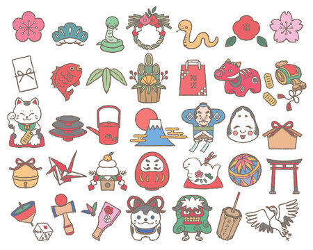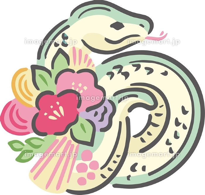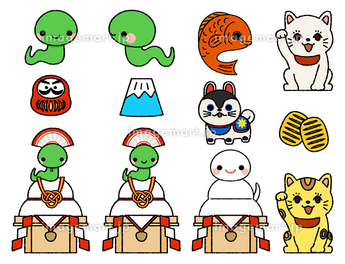 へび年のかわいいお正月手描き風イラストセット269235871- イメージマート。