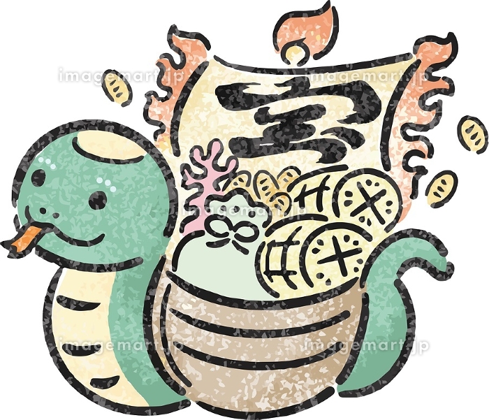 年賀状素材 2025 宝船 巳年 巳 へび ゆるかわ かわいい 手描き 水彩 正月 イラスト素材255176149- イメージマート。