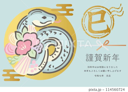 年賀状2025 年賀2025 巳年 巳 蛇 正月飾り モダン かわいい 手描き 筆文字 イラスト素材のイラスト素材114560723-PIXTA。