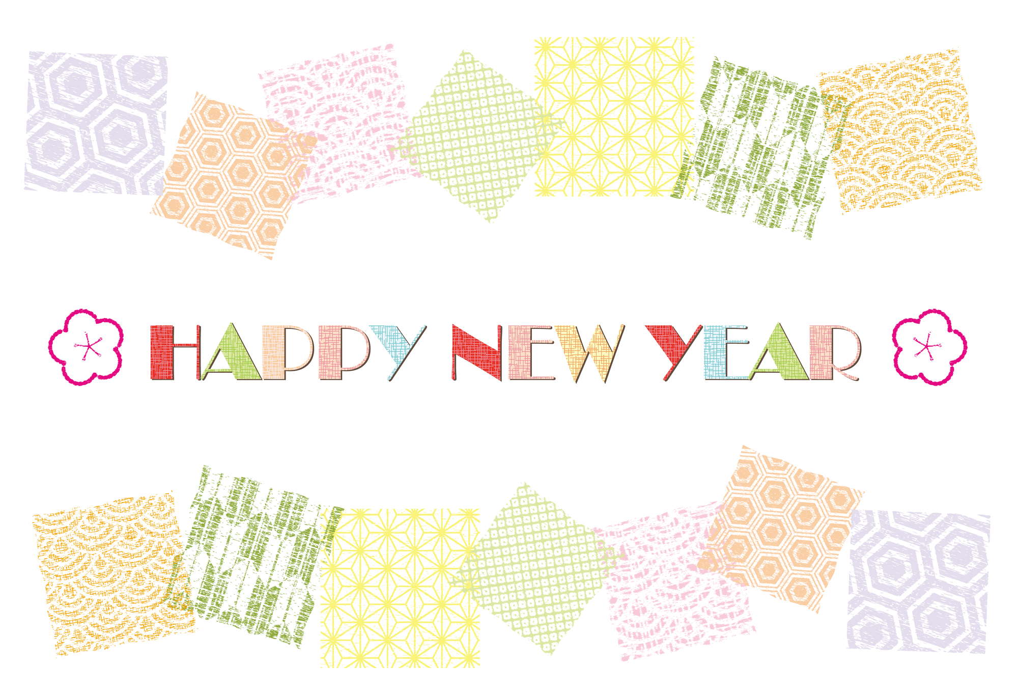 鮮やかでおしゃれな和柄が美しい和モダンの年賀状素材無料イラスト素材素材ラボ。