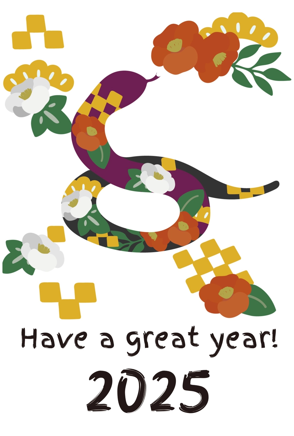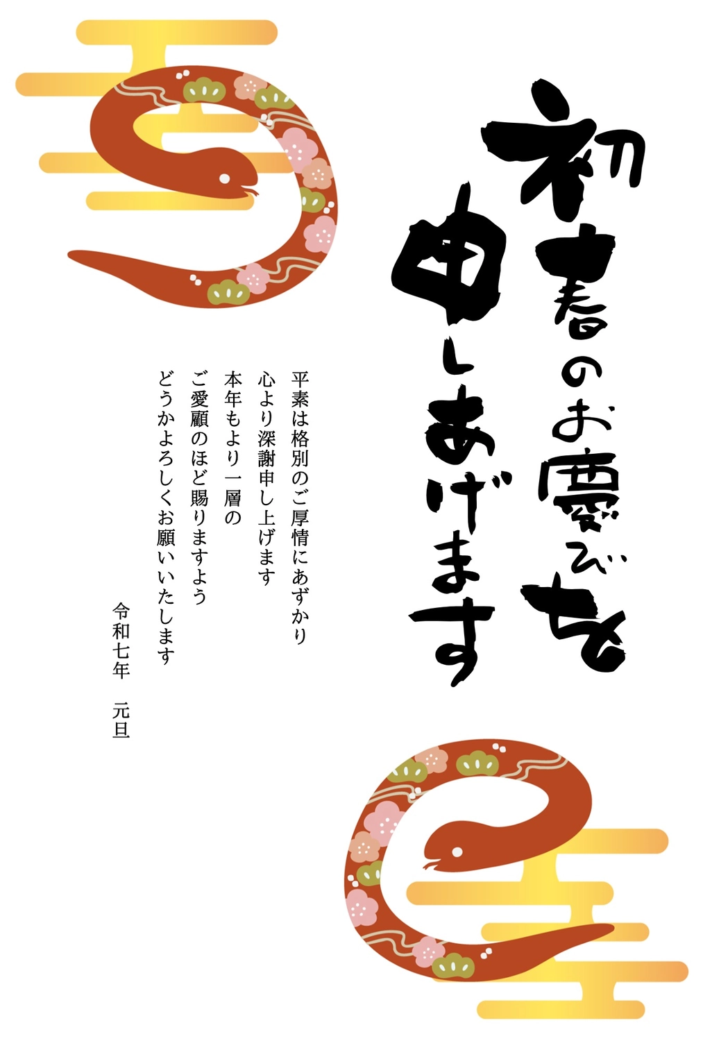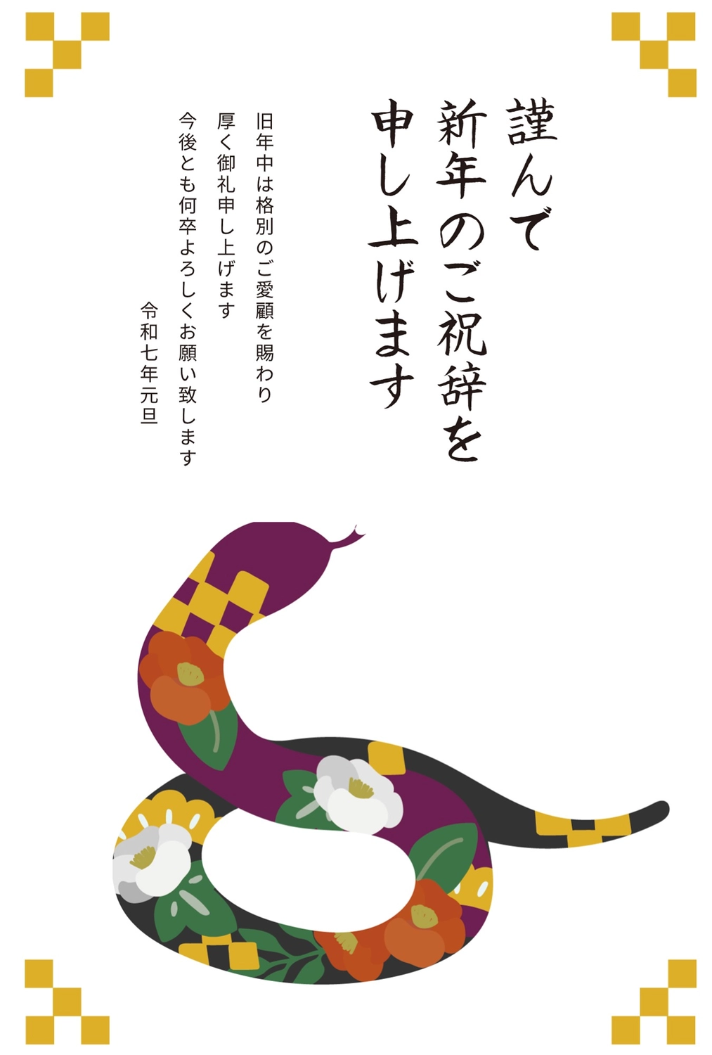 和柄の年賀状テンプレート・2025年 巳年無料イラスト素材素材ラボ。