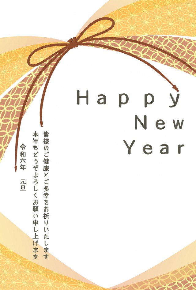 2024年 和柄と和風のリボンのある年賀状テンプレート無料イラスト素材素材ラボ。