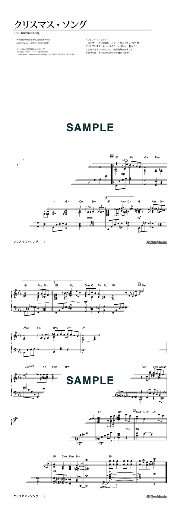 楽譜 The Christmas Song in Cメロディ譜 提供:リットーミュージック楽譜@ELISE。