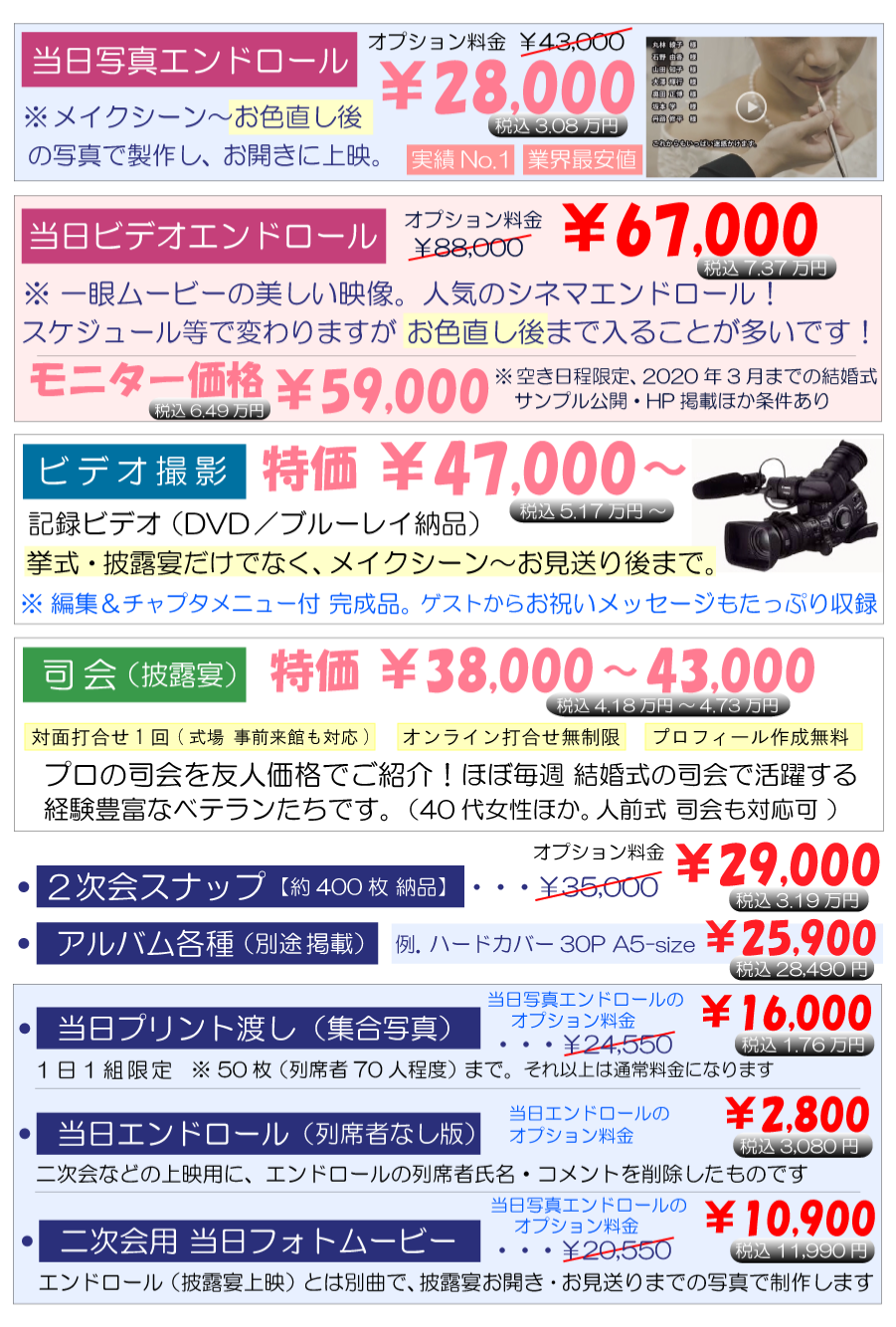 料金表 - ユニバーサルプランニング 〜横浜の結婚式ムービー制作会社。