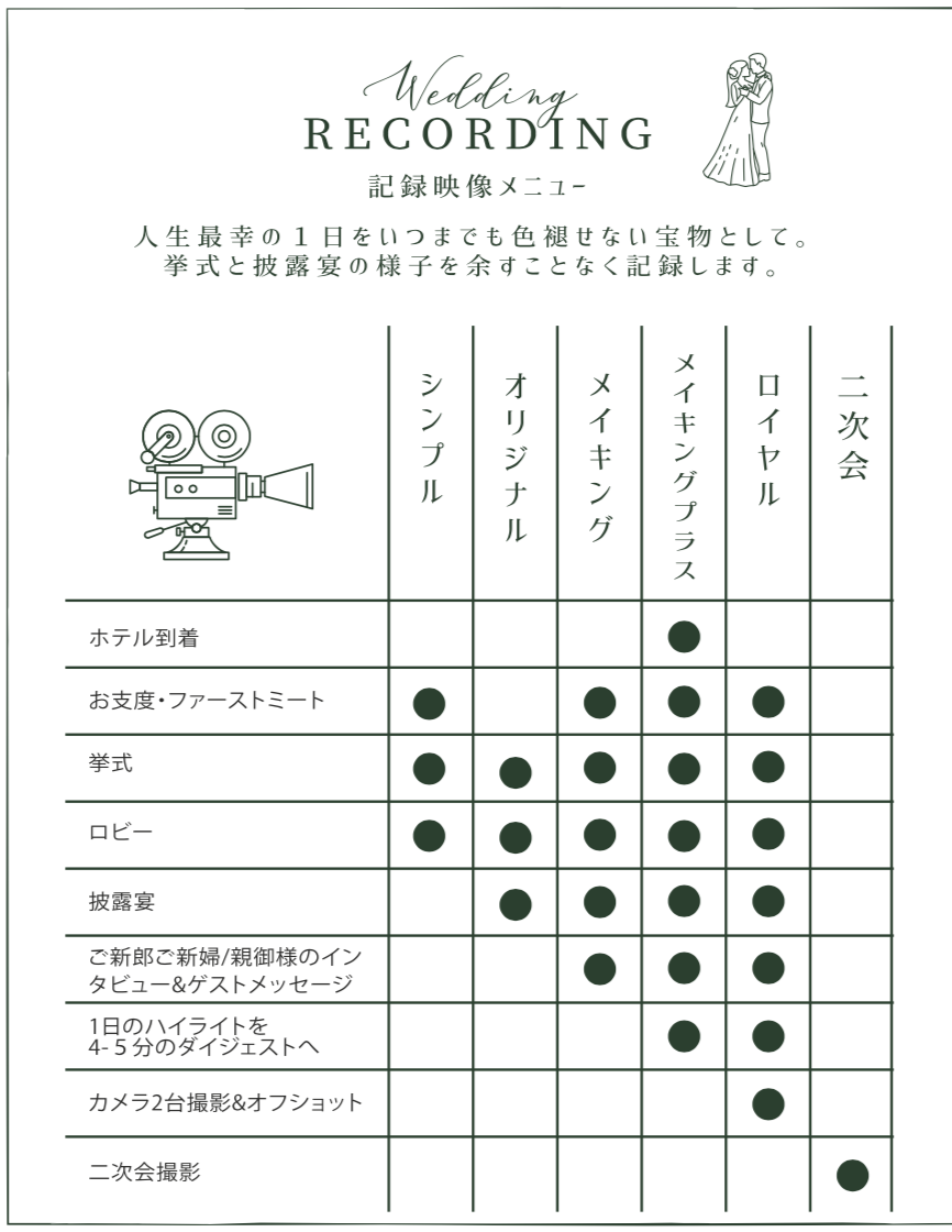 料金Logs.High qualityなウエディング動画撮影制作専門オフィス。