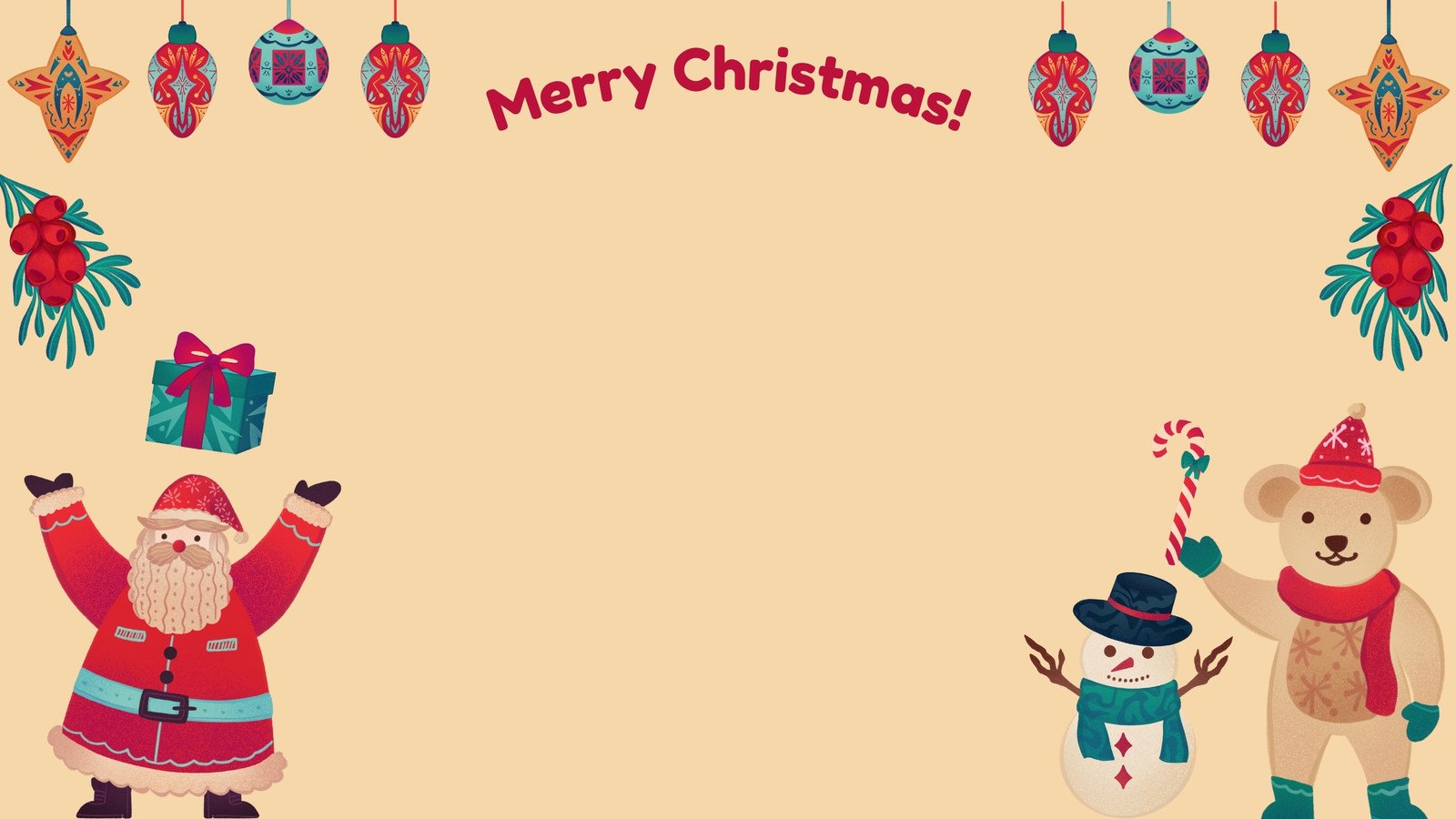 サンタ・雪だるま・手袋・リース・ひいらぎ・プレゼント柄かわいいクリスマス背景イラスト無料フリー85134素材Good。