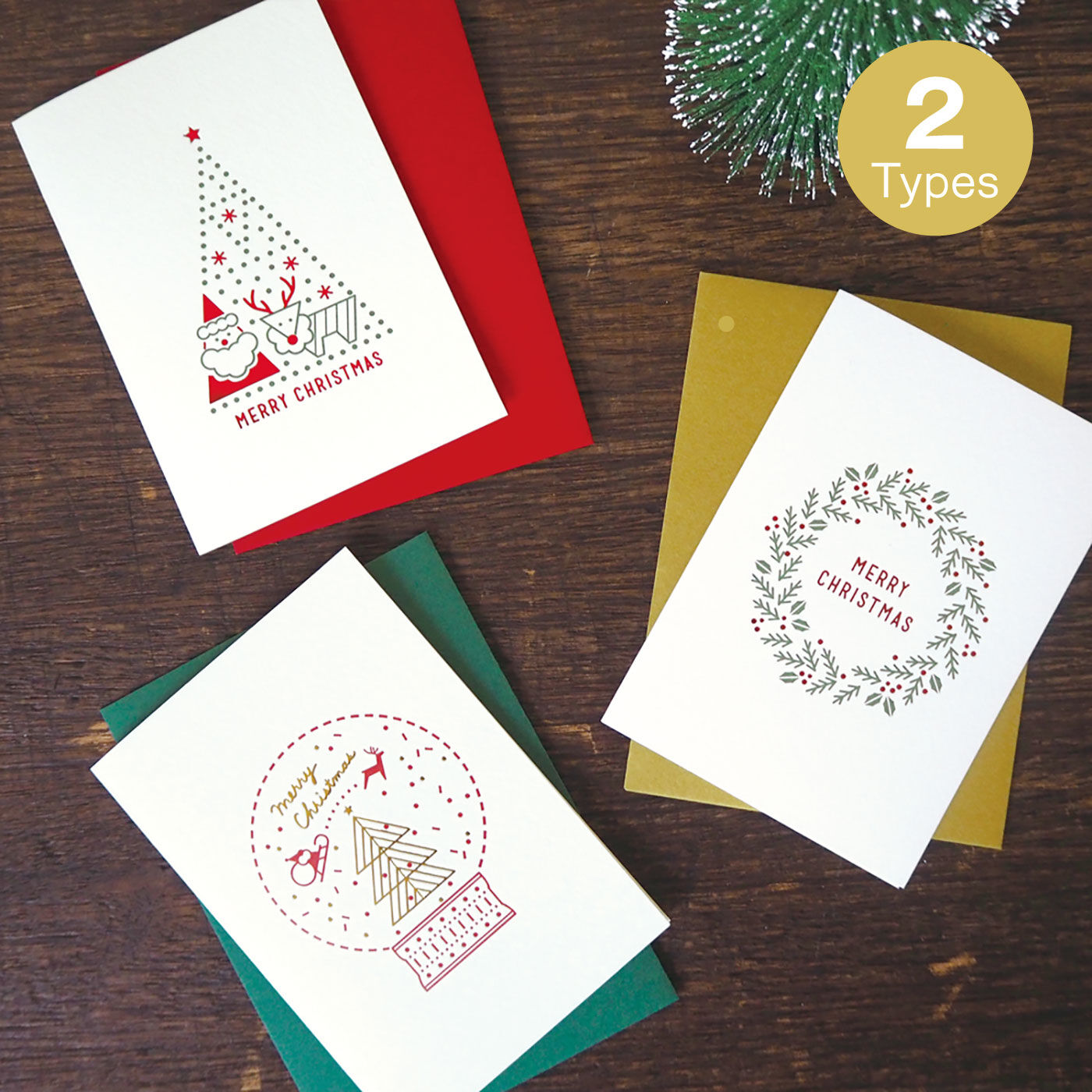 活版印刷と箔押しが魅力ボヌールクリスマスカード3枚セット。