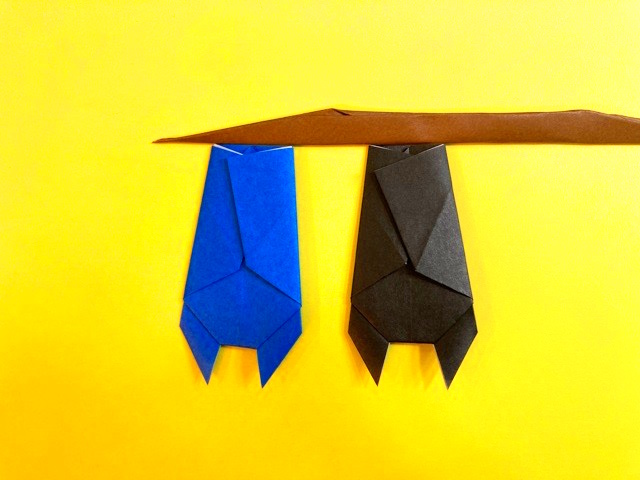 ハロウィン折り紙 逆さまにぶら下がるコウモリの作り方origami bad Halloween。