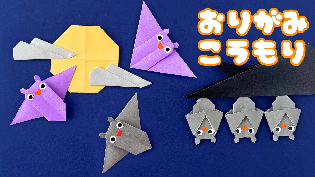 折り紙でコウモリのリアルで立体な折り方。簡単に子供でも作れます。幼稚園や保育園児のハロウィンの製作にも♪おりがみっこⅡ。