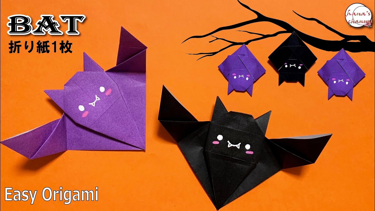 ハロウィン折り紙 簡単!可愛い コウモリの折り方 Halloween Origami How to make Cute Batinstructions。