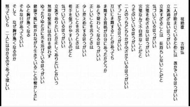 朗読 吉野弘の詩「祝婚歌」 - YouTube。