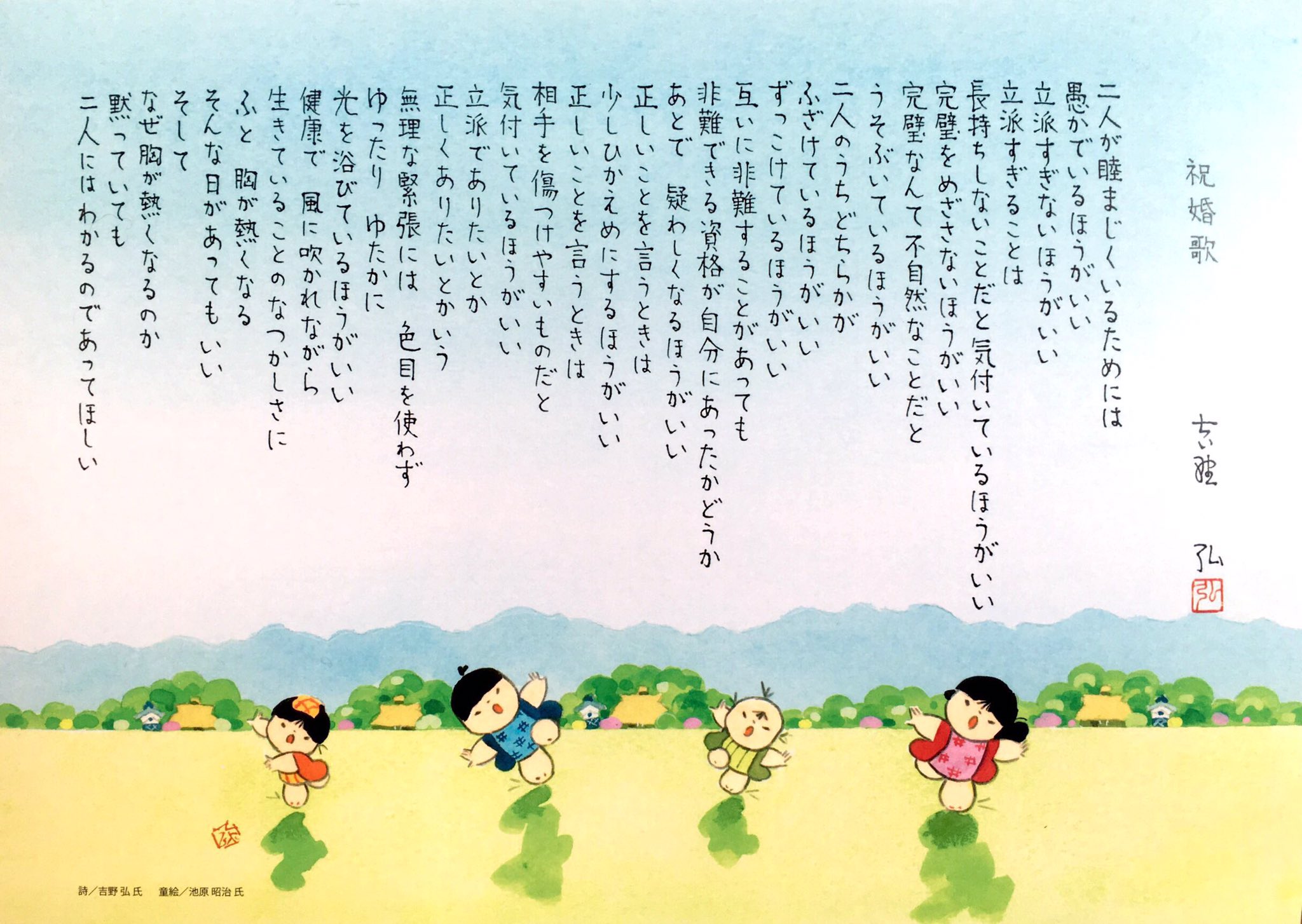 めちゃモテ委員長 on X: "吉野弘さんの祝婚歌という詩、すき 大切な人との対人関係を考えるときのバイブルとして、心に残しておきたいhttps:t.co RxjnVEylsw"X。