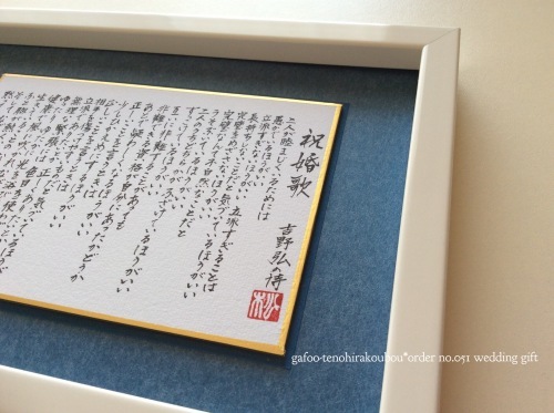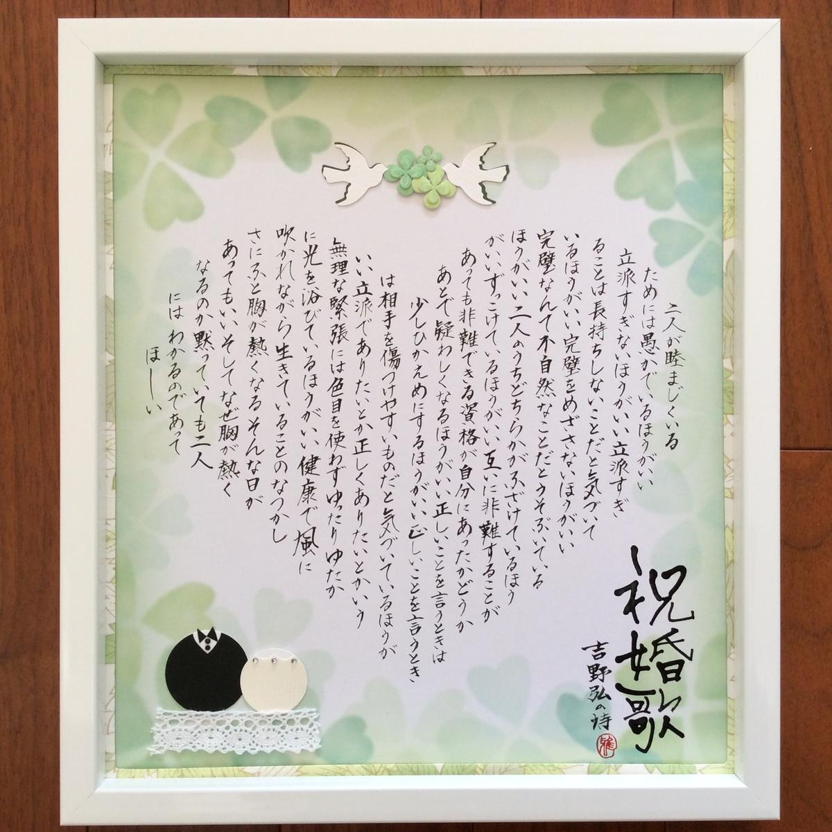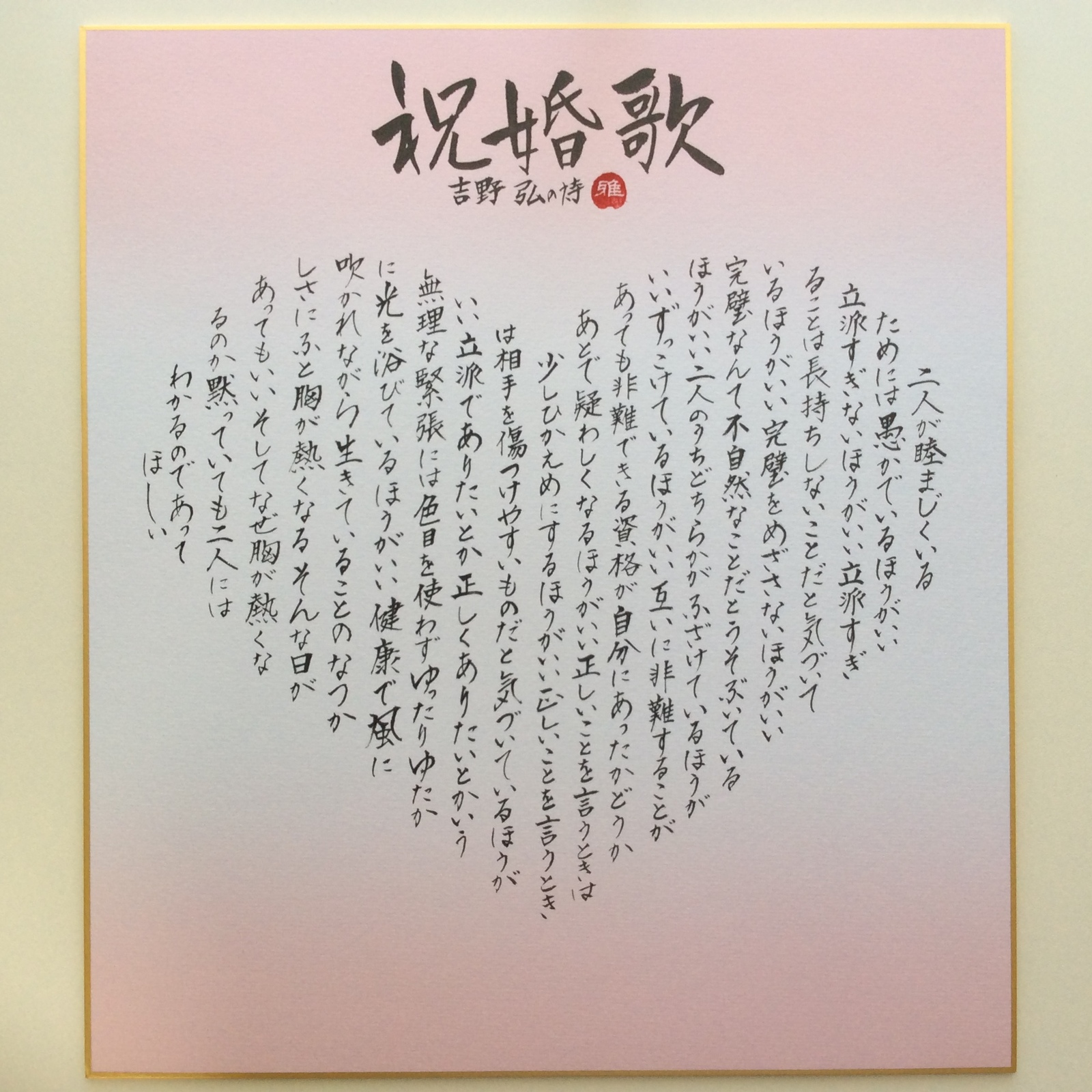祝婚歌 小色紙インチ額付 3 題横詩縦書 - 雅風てのひら第2工房minne byGMOペパボ 国内最大級のハンドメイド・手作り通販サイト。