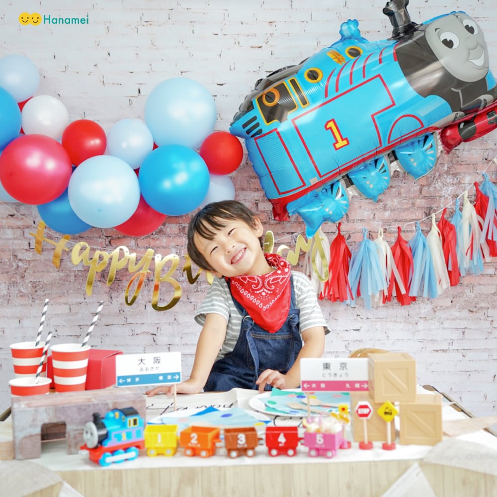 お誕生日 バルーン ハッピーバースデー 風船デコレーションセット ブルー 青 バースデーデコレーションセットキャラクター フィルムバルーントーマス付き誕生日飾り付け 飾り バルーン 風船 バルーンガーランド ベビー 男の子 女の子partyshop Hanamei。
